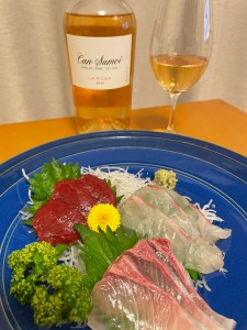 刺身と醤油の塩味と、ワインの塩味が口中で調和して複雑な味わいになり、それぞれの美味しさが増しました。また、ハマチに関しては塩味の調和効果とは別に、魚の脂分をワインの酸味が流してくれる効果もあり、あっさりと頂けました。